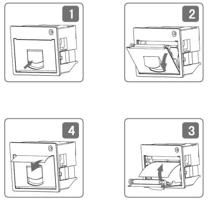 d)合上紙倉蓋,打印頭走紙軸壓齊打印紙后稍用力把打印頭走紙軸壓回打印頭,并把旋轉(zhuǎn)