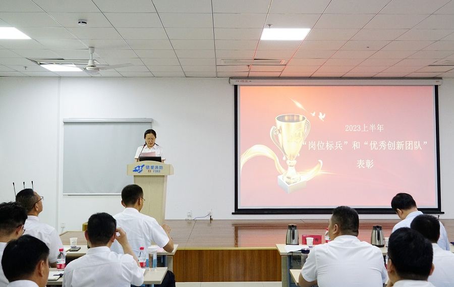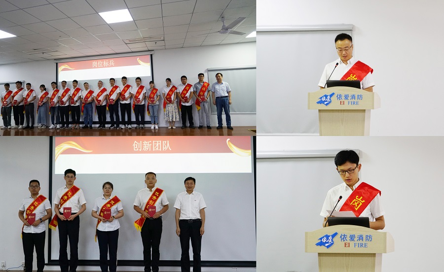 會(huì)議伊始,依愛消防黨總支黃薛梅書記宣讀公司2023年上半年創(chuàng)新團(tuán)隊(duì)及崗位標(biāo)兵稱號(hào)授予決定,史紅旗董事長(zhǎng)為崗位標(biāo)兵頒發(fā)榮譽(yù)證書并合影留念,許建華所長(zhǎng)為創(chuàng)新團(tuán)隊(duì)頒發(fā)榮譽(yù)證書并合影留念。崗位標(biāo)兵代表李澤旺、胡明宇做交流發(fā)言。